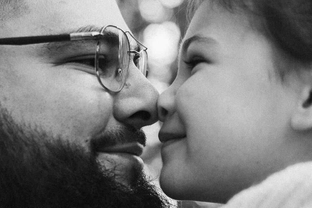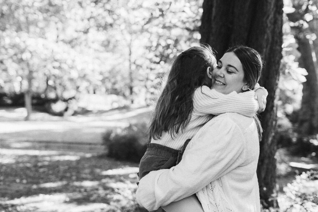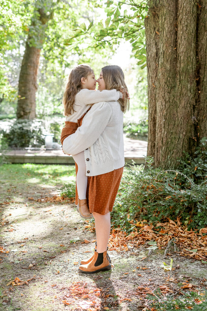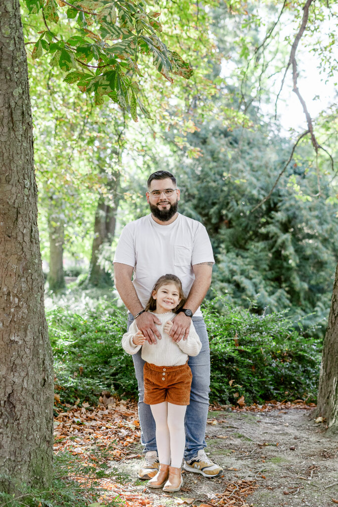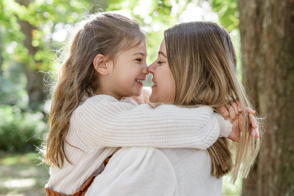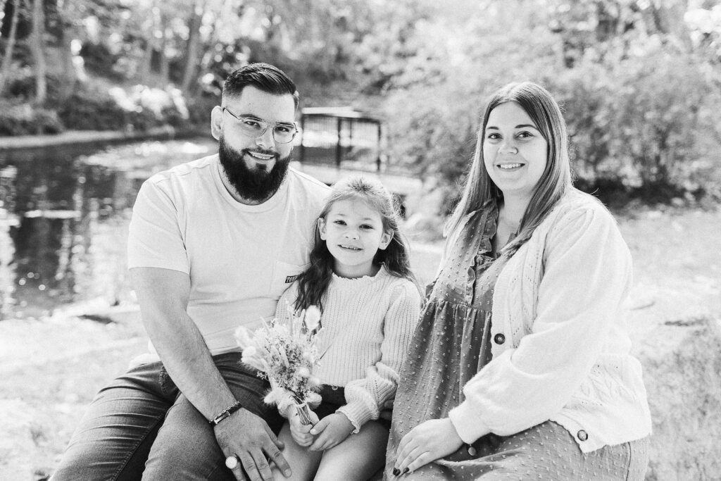 Au fil de la séance, nous avons aussi partagé des bisous, câlins et moments de tendresse, ceux qui racontent vraiment l’histoire d’une famille. Léana s’est blottie dans les bras de ses parents, Jessie a déposé un petit bisou sur son front, et Fred la regardait avec ce mélange de fierté et de douceur qui fait fondre le cœur. Ces instants sont ceux qui rendent chaque séance unique, et qui me rappellent pourquoi j’aime tant mon métier.